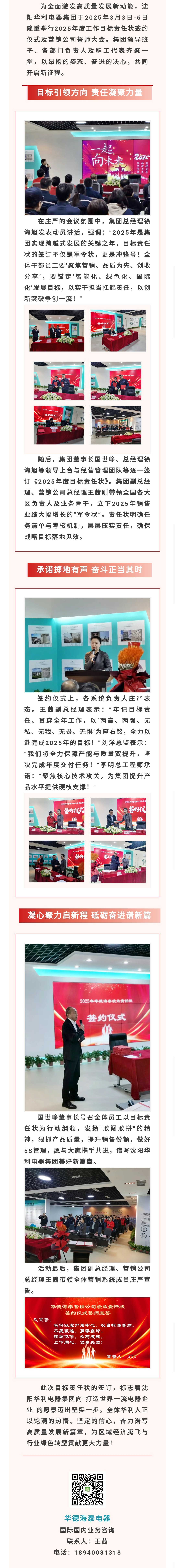 【概要描述】為全面激發(fā)高質(zhì)量發(fā)展新動(dòng)能,沈陽(yáng)華利電器集團(tuán)于2025年3月3日-6日隆重舉行2025年度工作目標(biāo)責(zé)任狀簽約儀式及營(yíng)銷公司誓師大會(huì)。集團(tuán)領(lǐng)導(dǎo)班子、各部門負(fù)責(zé)人及職工代表齊聚一堂,以昂揚(yáng)的姿態(tài)、奮進(jìn)的決心,共同開啟新征程。